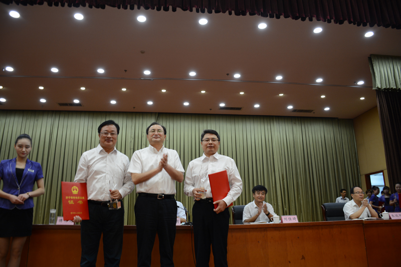 自2015年7月31日起,我公司通過自愿申報、資格審核、社會滿意度測評、材料評審、現場答辯評審和社會公示等環節,在材料評審環節和現場答辯環節,在20多個實力強勁的參評單位中,我公司力挫群雄,均獲得第一名,最終獲得了第五屆市長質量獎的最高獎,市長質量獎組織獎。傅明先市長為我公司代表董事長田民格頒發了獎杯和證書。